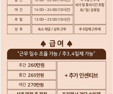 주간 10:00 ~ 20:00 10시간 주5일제 월급 260만