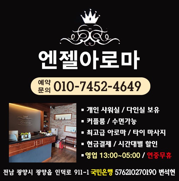 - 주소 전남 광양시 광양읍 인덕로 911-1 1층 엔젤아로마